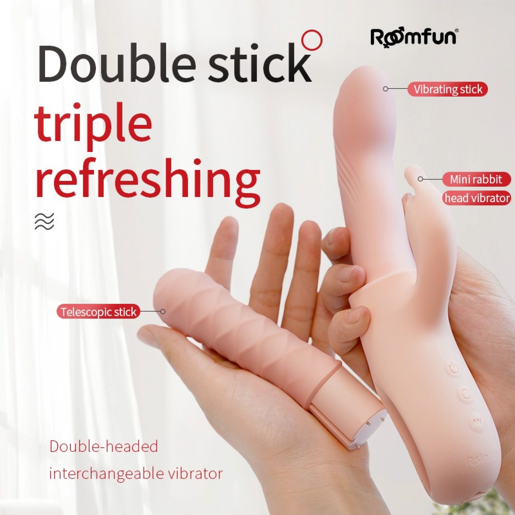Roomfun brings next-level innovation with its double-head interchangeable vibrator, offering versatility and realistic sensations in one device. Whether customers want the lifelike fingering effect, the deep thrusting telescopic mode, or dual-action stimulation, this product satisfies multiple desires with intelligent heating for added comfort.