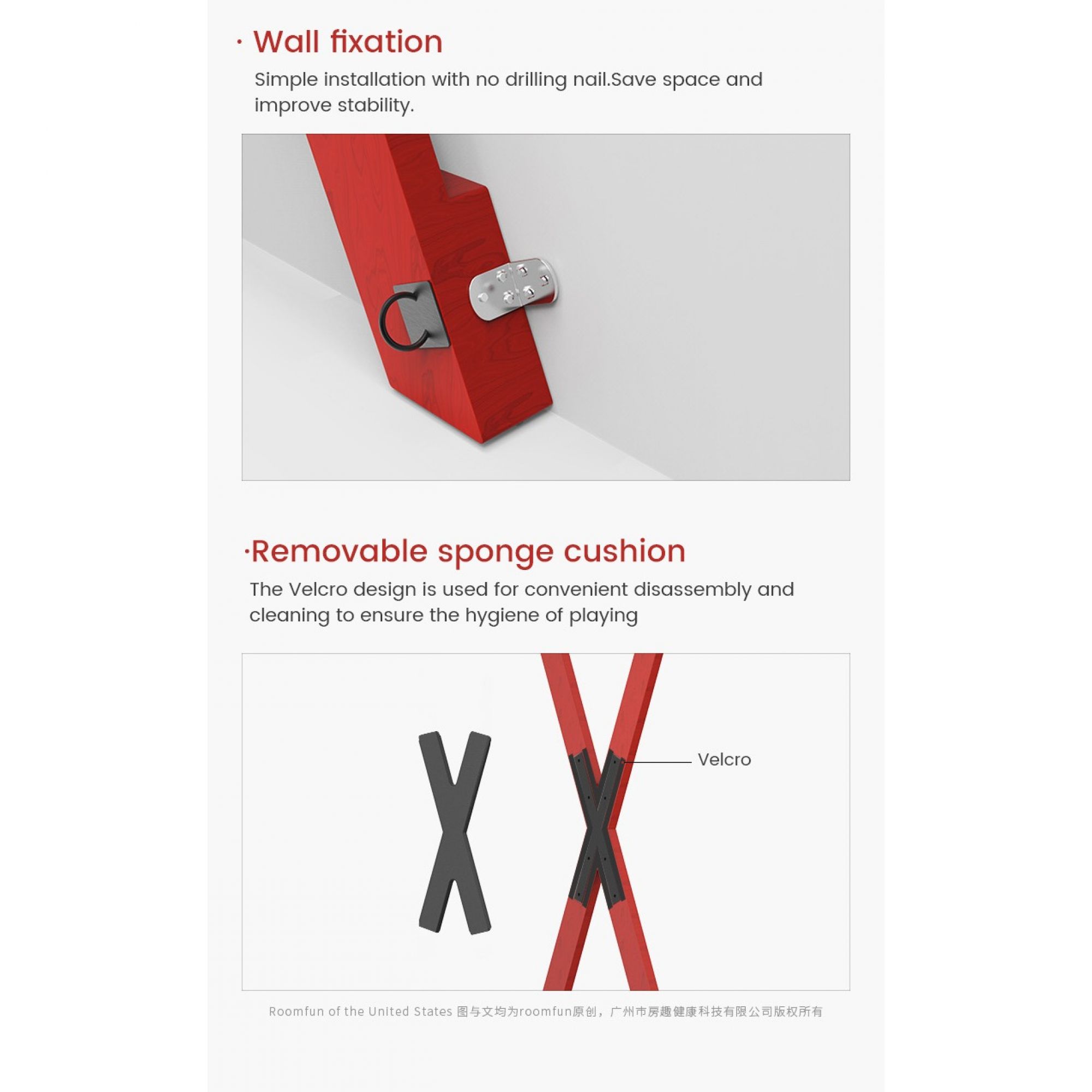 Easily assembled, disassembled, and transported, the cross adapts to your space and needs. It also includes options for wall fixation for added stability during play.