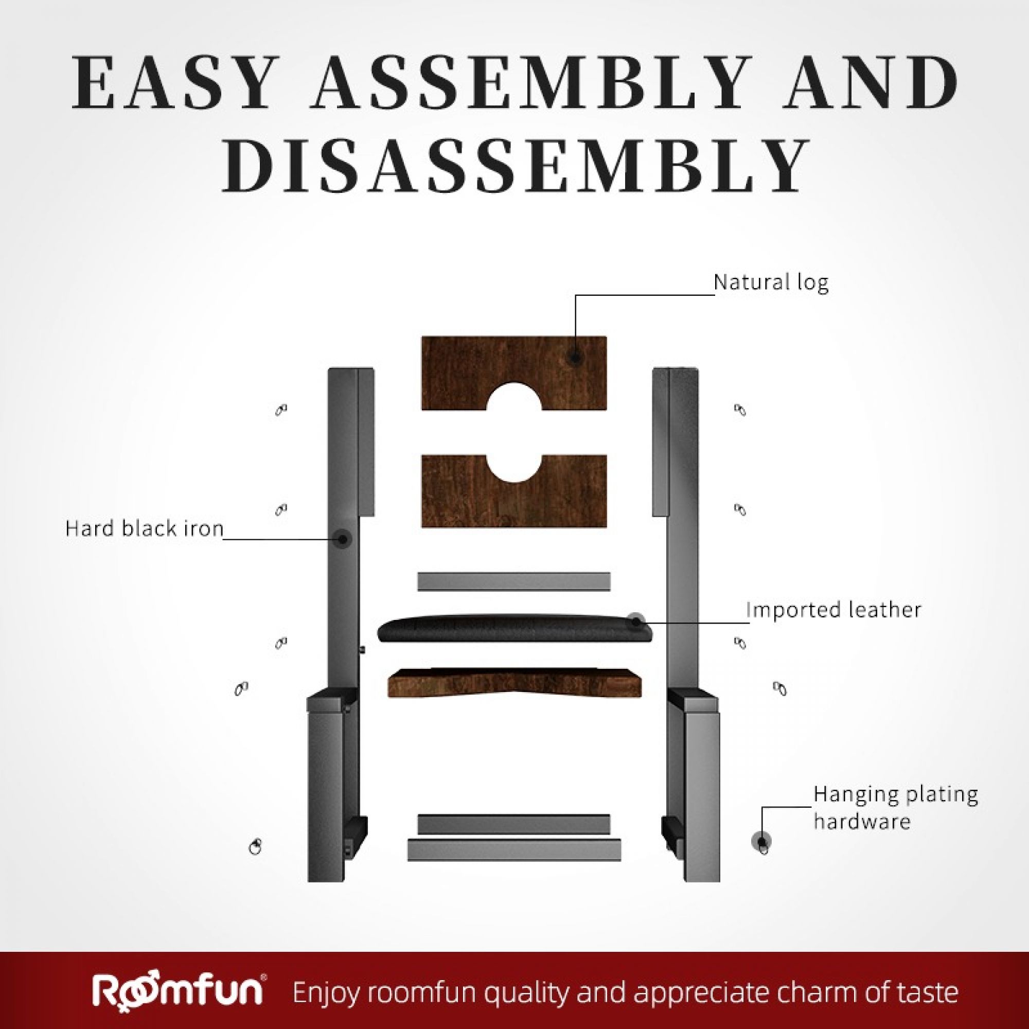 Made from natural log wood and hard black iron for exceptional strength, combined with soft imported leather cushions for maximum comfort.