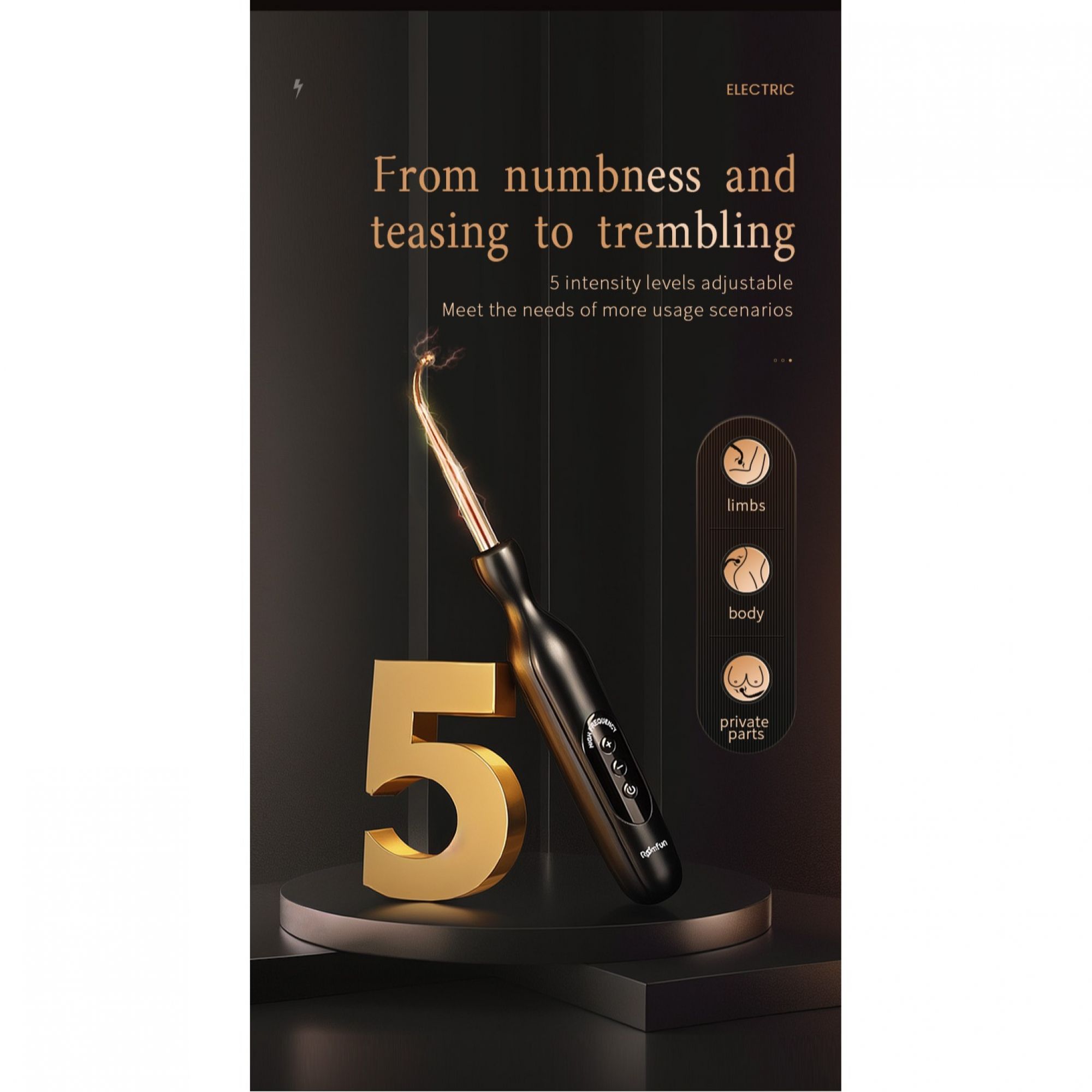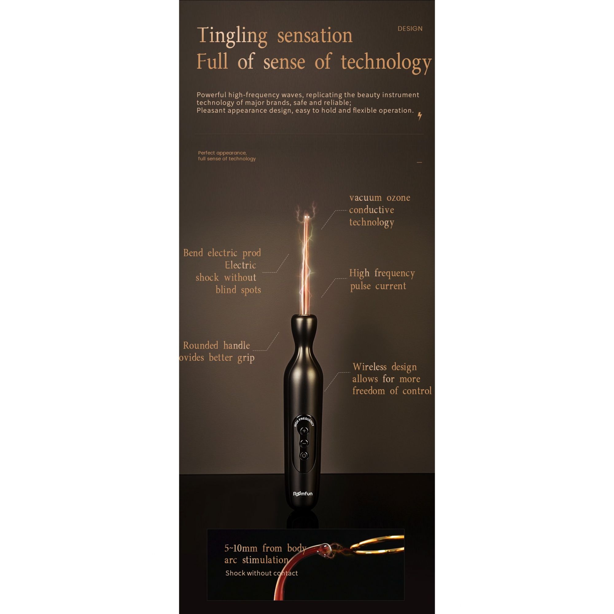 Experience a new level of tingling pleasure with the Roomfun High-Frequency Stimulation Wand – designed to excite, arouse, and awaken every nerve ending with electrifying waves of sensation.
